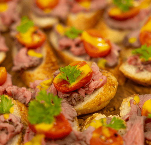 Брускети – с маслинова паста, сушен домат и пармезан;